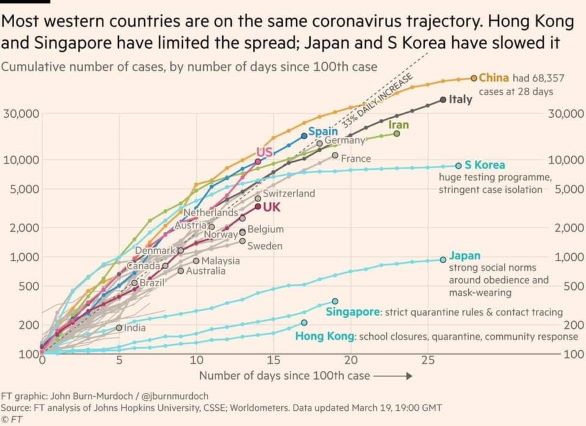 This graphic indicates that our containment measures at 19 March were better than PNG and central Africa, and on a par with Brazil, Mexico, Burma, Russia and UK.