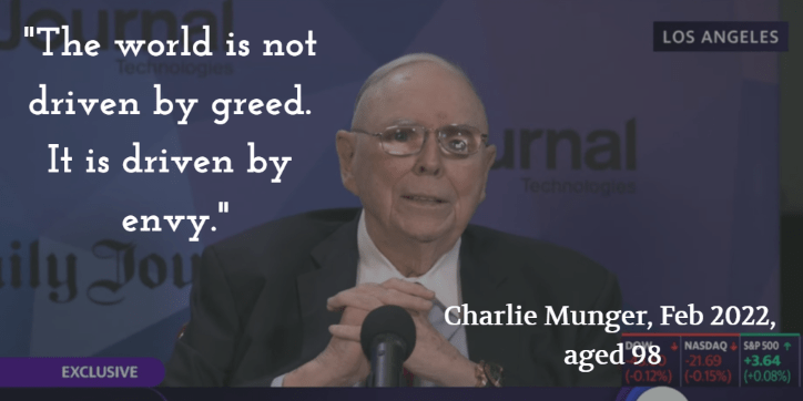 This is well summed up in the words of Charlie Munger, who together with Warren Buffett is the consummate capitalist so much so that they have been asked for advice by US Presidents and have been called on to lend credibility to stabilise markets at times of vulnerability, speaking in 2023 just after his 99th birthday: