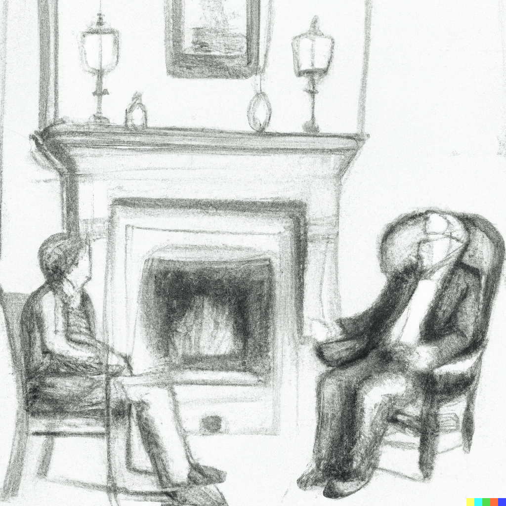 In a warm setting reminiscent of the sitting room in the Roosevelt’s Hyde Park estate, fire burning comfortingly behind them, a father sits talking with his middle-aged son, a conversation so evocative that occasional footage of actual recorded history or animation of concepts occasionally filters through their mind. The conversation ranges widely, but the tenor is one of general disappointment at the current state of affairs and concern that if things are not righted, and with urgency, then humanity will continue paying dearly.